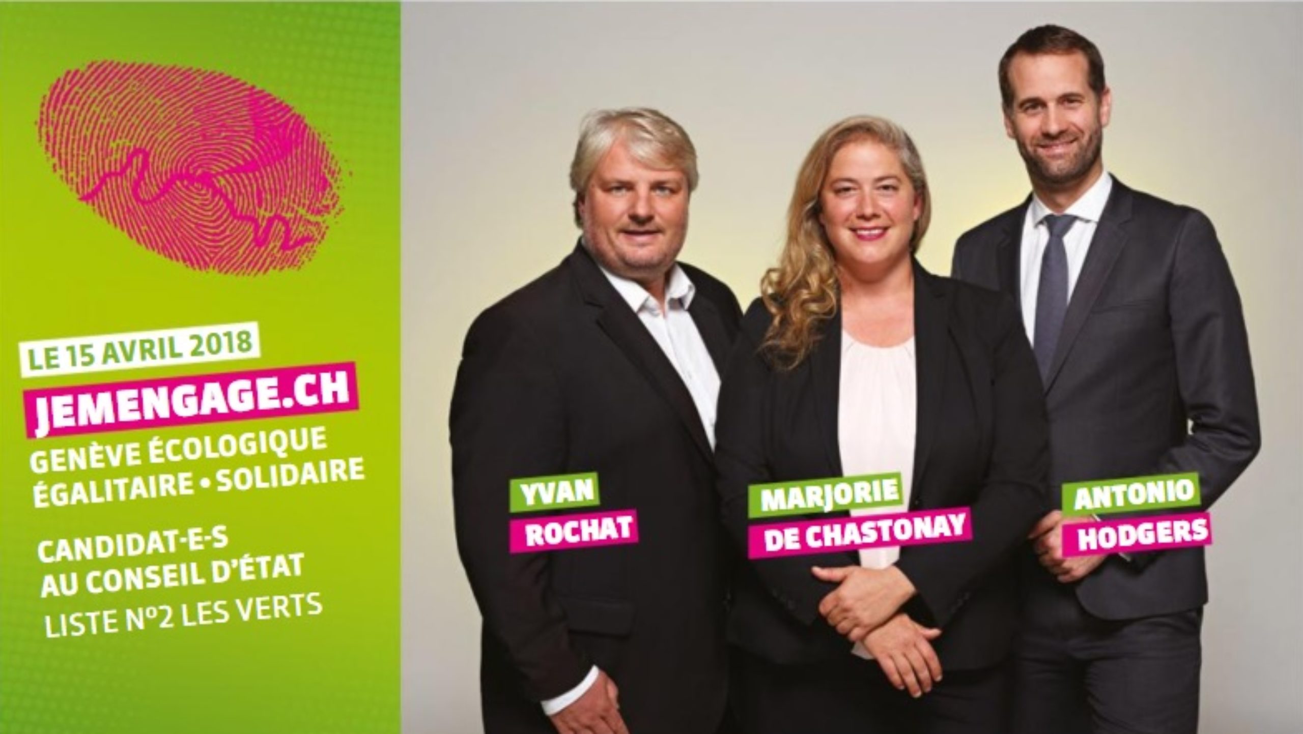 Pour les élections cantonales au Conseil d’Etat, les Verts de Meyrin-Cointrin vous recommandent d’élire Antonio HODGERS, Marjorie de CHASTONAY et Yvan ROCHAT (Liste No 2)